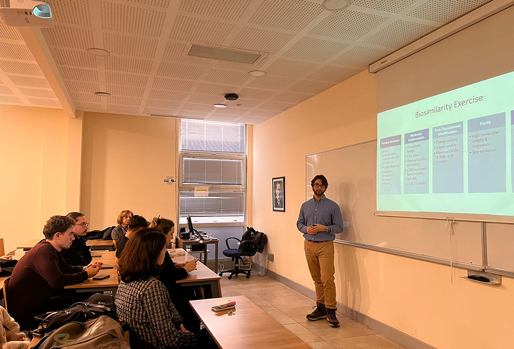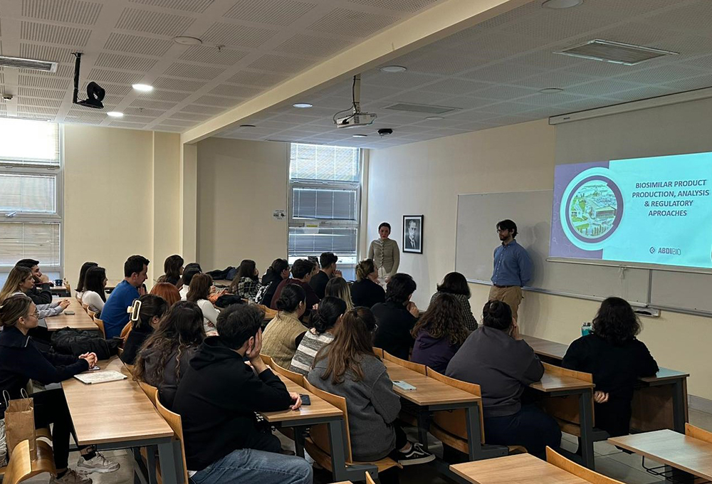 Moleküler Biyoloji ve Genetik Bölümü'nde (MOBİGEN), 3 Aralık 2025 Salı günü Abdi İbrahim İlaç Sanayi ve Ticaret A.Ş. Analitik Araştırma Geliştirme Yöneticisi Aykut Demirkıran tarafından “Biyobenzer Ürün Üretimi, Testleri ve Yasal Düzenlemeleri” başlıklı sunum gerçekleştirildi. Lisans ve lisansüstü öğrencilerimizin katıldığı etkinlikte, biyoteknolojik ürünlerin geliştirilmesi ve biyobenzer ilaç üretim süreçleri üzerine kapsamlı bilgiler paylaşıldı.