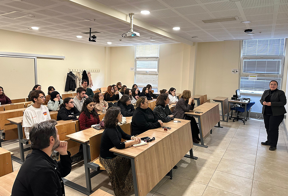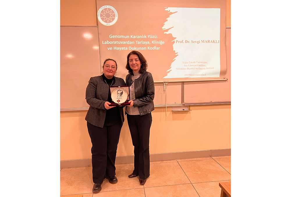 Moleküler Biyoloji ve Genetik Bölümü (MOBİGEN), 10 Aralık 2025 Salı günü “Genomun Karanlık Yüzü: Laboratuvardan Tarlaya, Kliniğe ve Hayata Dokunan Kodlar” başlıklı etkinlik düzenledi. Yıldız Teknik Üniversitesi Moleküler Biyoloji ve Genetik Bölümü öğretim üyelerinden Prof. Dr. Sevgi Maraklı'nın konuşmacı olduğu etkinliğe, lisans ve lisansüstü öğrencilerimiz katıldı. Etkinlikte; DNA yapısının keşfi, insan genom projesi ve genomik teknolojilerdeki ilerlemeler ile Prof. Dr. Sevgi Maraklı’nın çalışma alanı ve ekibinin yürüttüğü güncel çalışmalar hakkında bilgi verildi.